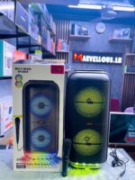 Connectivity: Offers Bluetooth (likely Bluetooth 5.0), AUX, USB, TF/micro-SD card input, FM radio, memory card support, and passive karaoke mic input.